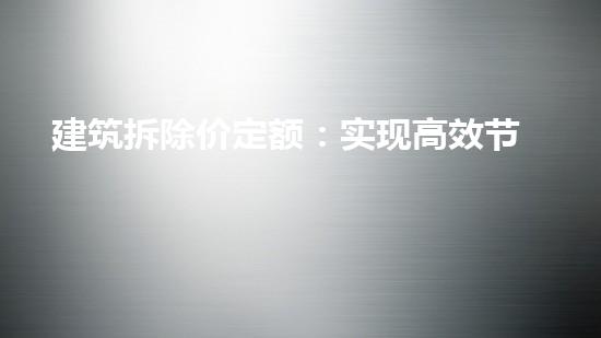建筑拆除是一个复杂的过程,需要考虑多种因素,如安全性、环境友好和高效性。在当前市场环境中,高效和节约构成了主要竞争力,建筑拆除行业也不例外。本文将介绍建筑拆除价定额:实现高效节约的拆除计费方式,以期提高拆除的效率和透明度。