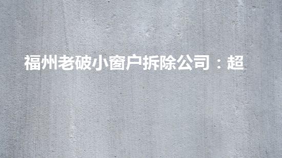 福州老破小窗户拆除公司以超低价著称,其价格甚至比同行业低30%以上。这样的价格优势,大大提高了行业的性价比,受到了广大客户的青睐。