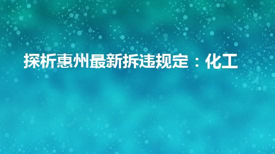 随着城市化的快速发展,许多城市面临着违建问题。惠州市最近颁布了新的拆违规定,旨在解决该市遭受违建问题带来的负面影响。本文将从化工技术专家角度出发,从以下四个方面对惠州最新拆违规定进行深入分析:拆除前的清洗置换、设备回收与废液处理、环保施工以及技术创新。