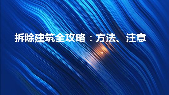 拆除建筑全攻略:方法、注意事项及安全指南是一个非常重要的话题,涵盖了拆迁施工中的所有要点,从拆迁前的准备工作、场地清理、危险废弃物处理、现场安全管理等多个方面进行详细阐述。通过本篇文章的介绍,对广大的拆迁工作者来说,对掌握拆迁工作有了更深入的认识,提升了安全意识与操作技巧,为合理与高效的拆迁提供了帮助和支持。