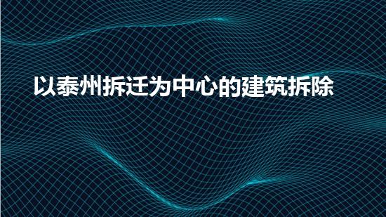 泰州是一个经济发达的城市,近年来经济的腾飞伴随着城市的快速发展,由此带来的房地产建设热潮使得拆迁成为了城市建设中的一个大问题。本文从化工技术专家的角度出发,分析了以泰州拆迁为中心的建筑拆除与环境治理需求,并探讨了指导性的解决方法。