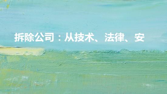 拆除公司需要从技术、法律和安全维度进行全面剖析拆除项目。在巴洛仕集团化工厂拆除项目中,拆除公司采用了先进的技术手段,遵守当地的法规和标准,注重现场安全保障,成功完成了拆除项目。同时,巴洛仕不动火水刀切割拆除技术的应用为拆除行业的发展带来了新的进展。拆除公司将在未来的工作中持续关注技术、法律和安全维度,为社会和环境做出贡献。