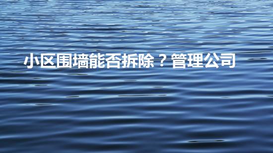 摘要:小区围墙能否拆除?管理公司有何权力?这是一个困扰业主和管理公司的问题,本文将从化工专家的角度出发,探讨小区围墙的拆除问题。文章主要内容包括围墙建造材料的分析、围墙是否存在安全隐患、拆除后如何处理化工废弃物、以及拆除工程的维权问题。