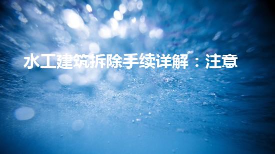 准备工作是拆除的关键环节。在拆除前,需要对建筑和设备进行细致的检查和评估,确定拆除范围和方案。对于水工建筑,还需要进行水位检查,确定拆除时的水位变化,以避免对周边环境造成影响。同时,还需要制定应急预案,以防万一。在确定方案后,需要向相关部门提交拆除申请,并根据要求提交必要的材料,如建筑物证明、环保报告等。在获得相关部门的批准后,方可开始拆除工作。