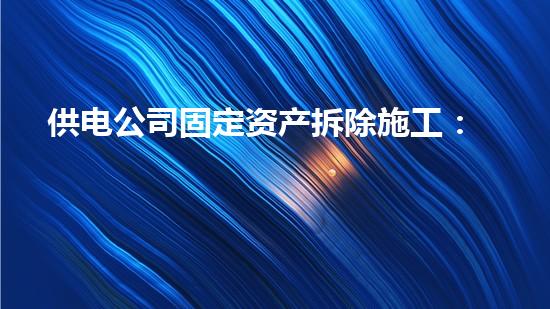 2. 设备回收:设备回收是供电公司固定资产拆除施工中的一项重要工作。在拆除过程中,需要对设备进行细致的检查,并采取措施防止设备损坏。拆除过程中,需要使用专业的工具、设备和技术,以确保设备安全地拆卸下来并转移到目的地。同时,还需要进行设备的回收和处理,以保证废弃设备得到切实的处理和回收。