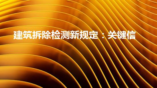 新规定主要针对建筑拆除前的检测和预处理,要求建筑拆除前必须进行彻底的检测,以确保建筑能够安全和有效地拆除。具体要求包括:一是要求拆除前进行彻底的测量和分析,以确定拆除方案;二是要求确保拆除过程中的环保和安全措施得到全面落实;三是对拆除过程中的噪声、震动、扬尘、废弃物等进行控制和处理。