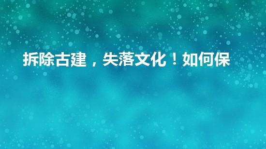 随着城市化进程的加快,大量的中华传统建筑被拆除或者重建,这不仅仅导致了历史文化的遗失,还给我们后代造成了严重的问题。本文将介绍拆除古建,失落文化!如何保护中华传统建筑遗产?的话题,从多个角度深入探讨如何保护中华传统建筑遗产,引领读者关注华夏之美。