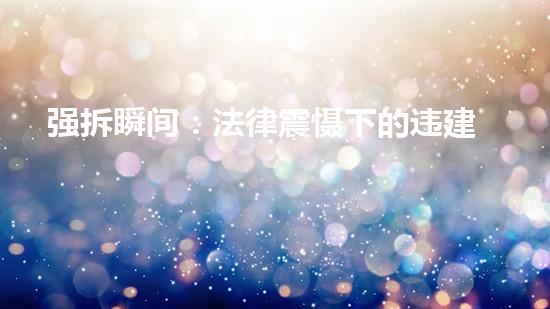 “违建”是指违反国家法规、未取得相关审批手续而建造或兴建的建筑物。为了规范城市建设和保障人民群众的生命财产安全,我国对违建进行了严格的打击。在强拆瞬间,法律和技术的有机结合,实现了违建毁灭的动态呈现。本文聚焦强拆瞬间:法律震慑下的违建毁灭,从拆除行业专家角度,对其进行详细的专业深入阐述。