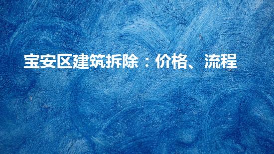 建筑拆除的价格通常由以下因素决定:建筑物的类型、高度、面积和结构复杂程度、拆除的危险程度、交通和附近住宅的距离、以及是否需要专业人员等。在宝安区,建筑拆除的平均价格通常在每平方米300元到400元之间,但在特殊情况下这个价格可能会更高。