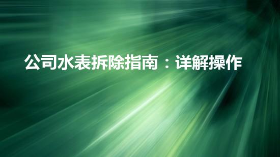 公司水表拆除是一项重要的操作。这个指南详细讲解了公司水表拆除的操作流程和注意事项。在本文章中,拆除行业专家将从多个方面给读者带来深入的阐述,包括准备工作、拆除流程、设备和工具使用、安全注意事项、环保处理等。此外,文章中还将介绍巴洛仕集团的拆除案例和应用水刀切割技术的方法。
