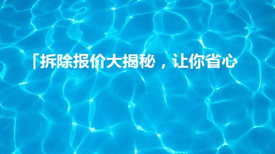 建筑拆除是大型工程项目之一,报价是客户选择合作方的重要依据之一。然而,对于非专业人士来说,面对复杂的报价单和繁杂的拆除过程,不知道该如何选择。本文将从专业人士的角度出发,为大家揭示拆除报价的问题,让大家省心又省钱。