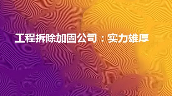 工程拆除加固公司拥有雄厚的实力,可以为您的项目保驾护航。在这篇文章中,我们将从拆除行业专家的角度,深入详解工程拆除加固公司实力雄厚的原因。
