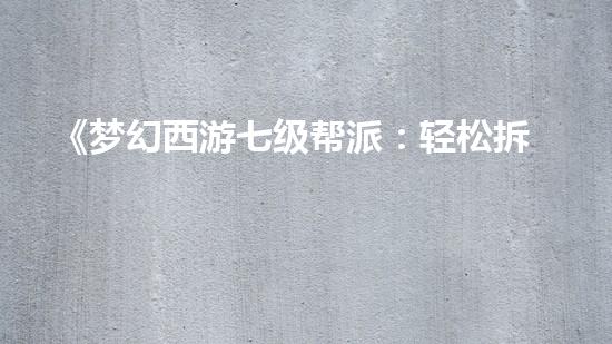 《梦幻西游七级帮派:轻松拆除建筑指南》是针对《梦幻西游》游戏中的新功能——七级帮派建筑进行的一份拆除建筑指南。本篇文章,以化工专家的身份,对这份指南进行了深入的分析和解读,并结合实际案例中的应用,对读者进行了详细的案例分析和技术讲解。