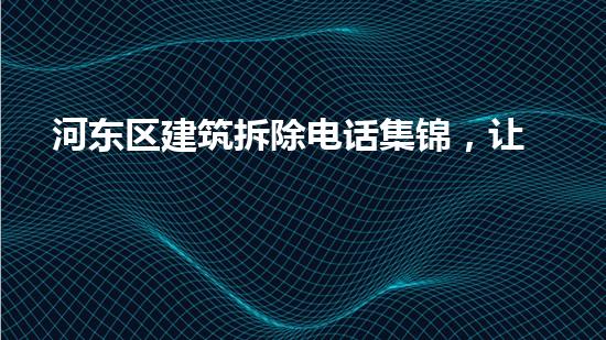 河东区建筑拆除电话集锦,为您提供全面便捷的拆迁相关信息。在这篇文章中,我们将从化工专家的角度,详细阐述河东区建筑拆除电话集锦的四个方面,并提供各种专业的技术方案和解决方案,助您轻松应对各种复杂的拆迁情况。