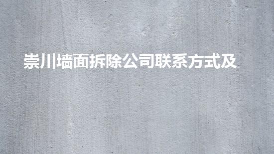 本文将介绍崇川墙面拆除公司的联系方式及服务说明,为读者提供背景信息。通过详细的专业阐述,引出读者的兴趣,让读者对于该公司的服务有一个更深入的了解。