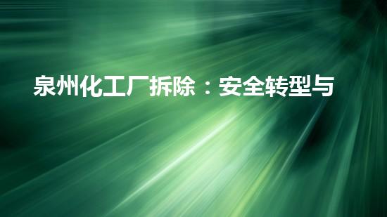 在泉州这座千年古港与现代制造业基地交织里,一场深刻而静默的变革正在发生。伴随进步蓝图的重绘与产业升级的号角吹响,高能耗、高危险的化工厂拆除项目被提日程。这不但是淘汰落后产能的物理经过,更是都市安全、生态环境与未来地方的一次系统性重塑。泉州,站在从传统工业都市向宜居宜业现代化都市转型的路口,而化工厂的拆除与治理,无疑是路上不可或缺、充满挑战的一步。