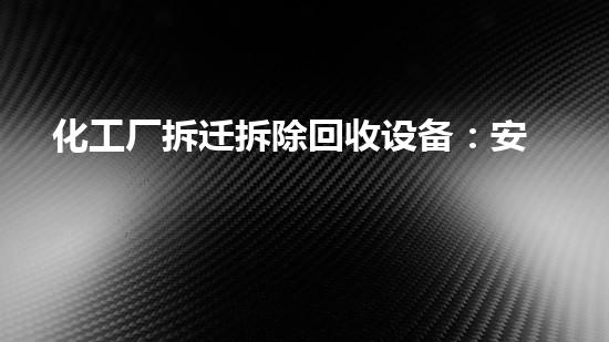 在产业升级、环保要求趋与都市更新的多重驱动下,越来越多的老旧化工厂面临着关、搬迁或拆除的命运。但是,化工厂的拆除绝非“一拆了之”,其内部蕴藏着大量高价值高危险或可循环利用的设备。如何通过、系统的化工厂拆迁拆除回收设备经过,在安全的前提下,化挖掘残余资产价值,并履行环境保护责任,已成为企业治理者、政府监管部门及服务商共同的核心议题。这不但是一项复杂的工程技术挑战,更是一门关乎、安全底线与可持续进步的治理艺术。