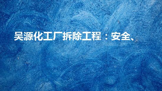 我们将深入剖析吴化工厂拆除工程所涉及的核心环节,揭示其如何一项艰巨的挑战,转变为推动区域可持续进步的典范案例。