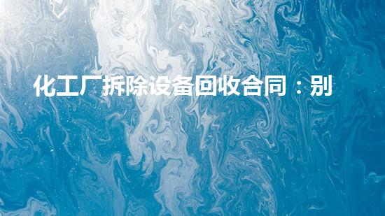很多人觉得设备回收合同嘛,无非是约定个价格、定个日期。但化工厂拆除的特殊性,让这份文件的分远超想象。