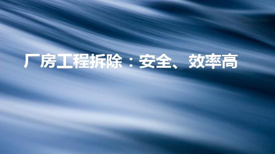 厂房工程拆除:安全、效率高与可持续进步的根本