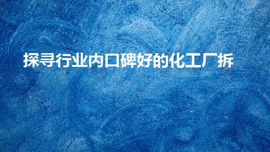 探寻行业内口碑好的化工厂拆除品牌:安全环保与效率的平衡艺术
