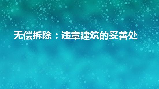 摘要:随着城市化的进程,违建问题愈加突出,逐渐成为一大社会问题。针对这一问题,无偿拆除是一种妥善的解决方式,既可以维护市容,又能保障居民的安全。本文将从专业化工角度出发,深入探讨无偿拆除:违章建筑的妥...
