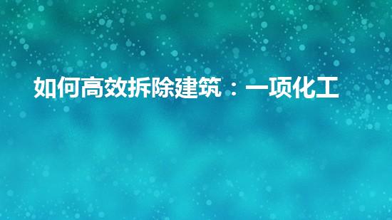 专业建筑拆除施工,高效安全快捷!摘要:随着城市化的不断发展和建筑物年限的到期,建筑拆除会成为不可避免的任务。在这项任务中,安全性、高效性和环保性显得尤为重要。作为一名拆除行业的专家,我将从以下几个方面...