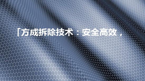 摘要:本文将介绍方成拆除技术,这种技术安全高效,助力城市更新。在深入研究方成拆除技术之前,我们会提供背景信息。方成拆除技术已被广泛应用于国内的大型拆除工程中,旨在减少对环境的影响,以及提高城市更新的效...