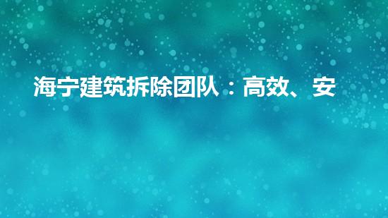 摘要:本文将为您介绍海宁建筑拆除团队:高效、安全、专业,这支团队在拆除行业中有着不可小觑的地位。我们将从4-6个方面对海宁建筑拆除团队的高效、安全和专业做详细的阐述,希望能够激发您的兴趣。正文:一、团...