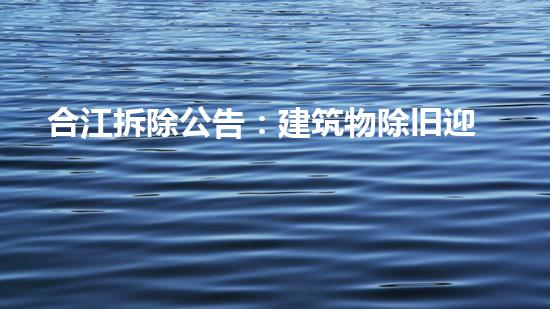 摘要:合江拆除公告:“建筑物除旧迎新!”是一个令人兴趣倍增的话题。本文从拆除行业专家角度出发,对该公告进行了详细深入的阐述。首先,我们介绍了拆除公告的背景,然后从装备清理和回收、危险废物处理、环保施工...