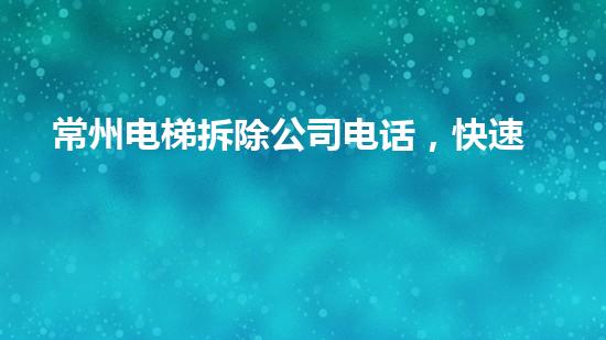 常州电梯拆除公司电话,快速、专业、安全的服务!