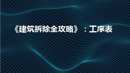 摘要《建筑拆除全攻略》:工序表格图纸大全是一本承载着拆除工程行业经验与技术的专业指南。本文将从拆除行业专家的角度出发,对该书进行详细的专业解读。文章将从拆除前的准备工作、拆除过程中的技术应用、设备回收...
