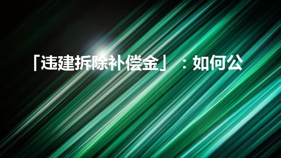「违建拆除补偿金」:如何公正合理地分配?