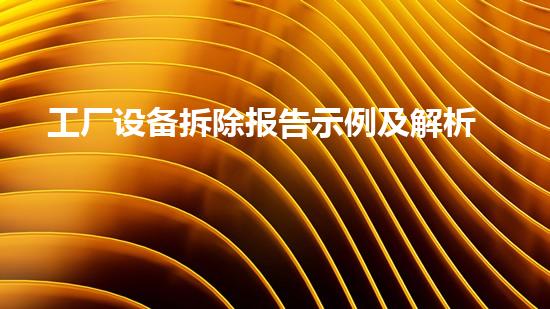 摘要:本文主要介绍工厂设备拆除报告示例及解析。拆除工厂设备是一项复杂的工程,需要综合考虑多方面的因素,如设备的特性、拆除过程中的安全和环保等,同时需要根据实际情况做出相应的技术选择和决策。本文通过分析...