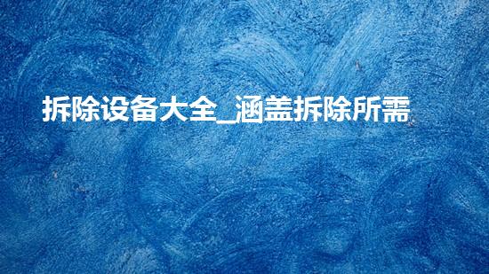 摘要:本文将介绍拆除设备大全,包括各式工具设备,快速掌握拆除专业知识。希望通过本文,读者能够增加相关知识,提高专业技能水平。正文:一、拆除工具设备拆除设备必须备有一定的工具设备,以保证拆除过程的顺利进...