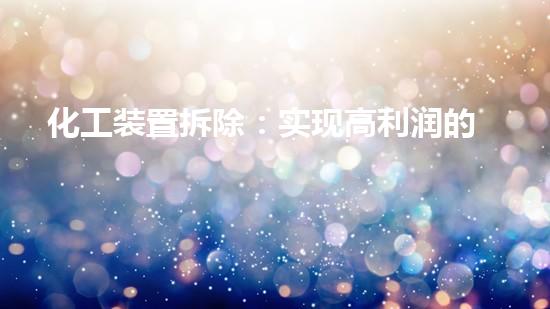 摘要本文旨在探讨化工装置拆除的可行性分析以及如何实现高利润。文章先概括了化工装置拆除的现状和背景,引出对于该问题的研究和分析的必要性和重要性。接着,通过深度分析,从多个方面探讨了化工装置拆除的可行性及...