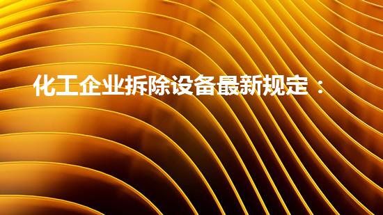 化工企业拆除设备最新规定:全面解读摘要随着化工产业的飞速发展,越来越多的老旧设备需要被拆除。为了规范拆除设备的行为,保障环境安全,我国出台了一系列拆除设备的法规和标准。本文以化工企业拆除设备最新规定为...