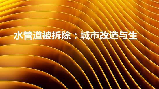 水管道被拆除:城市改造与生活变革摘要:水管道被拆除是一项大规模的城市改造计划,这项计划不仅影响城市的外观,同时也影响人们的生活。本文主要探讨这项计划的影响和变革,引发读者的兴趣,并提供背景信息。正文:...