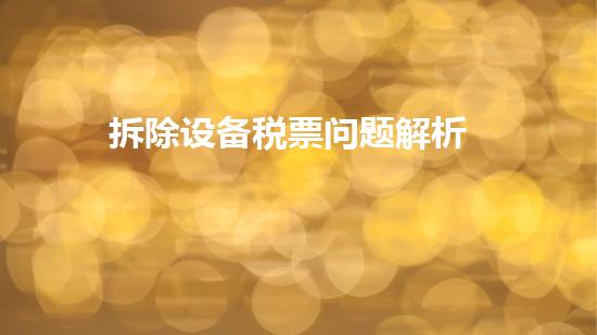 拆除设备税票问题解析