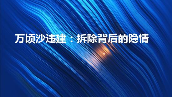 摘要:万顷沙违建是一起因房屋违建引发的社会事件,而随着拆迁工作在不断推进,拆迁过程中衍生出的各种问题不断浮现。本文将由拆除行业专家角度出发,从多个方面对万顷沙违建:拆除背后的隐情揭秘进行详细专业深入的...