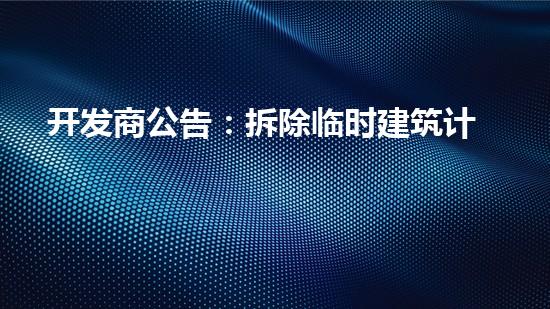 摘要本文将介绍开发商公告:拆除临时建筑计划,并引出读者的兴趣和背景信息。随着城市建设的不断发展,临时建筑已成为城市发展过程中不可或缺的部分。但是,在城市建筑快速发展的同时,也要及时拆除那些已经不再需要...